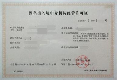 代办因私出入境中介机构经营许可证